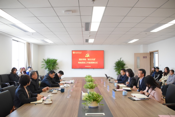 3月19日下午,国际学院“耕云乐道”网络思政工作室授牌仪式在莫愁校区综合楼802会议室举行。校党委副书记俞安平、党委常委、宣传部部长强飙、宣传部副部长唐小芳、宣传部新闻与新媒体中心主任潘洪波出席,国际学院全体领导班子成员及师生代表齐聚一堂,共同见证这一重要时刻,仪式由国际学院党委书记、关工委主任江振春主持。