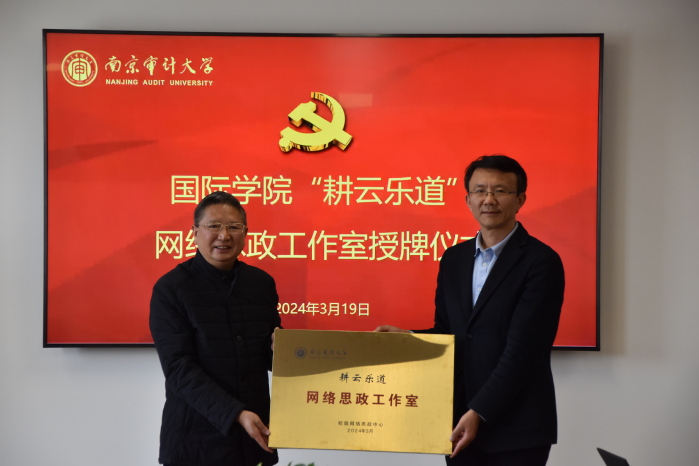 俞安平为国际学院“耕云乐道”网络思政工作室授牌,标志着工作室正式成立。