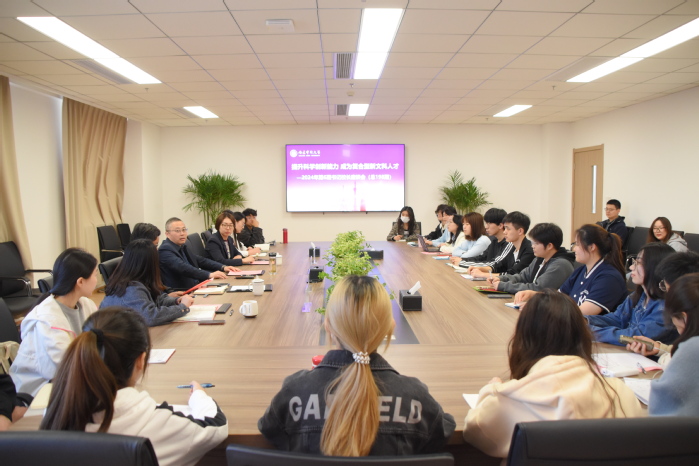 我校2024年第6期(总第198期)书记校长座谈会于4月10日在莫愁校区综合楼802会议室召开。任志成副校长围绕“提升科学创新能力 成为复合型新文科人才”这一主题与国际学院22、23级学生代表进行座谈交流。校团委副书记钱琨、徐菲和学生代表参加座谈。座谈会由国际学院副书记、副院长、关工委副主任王静主持。