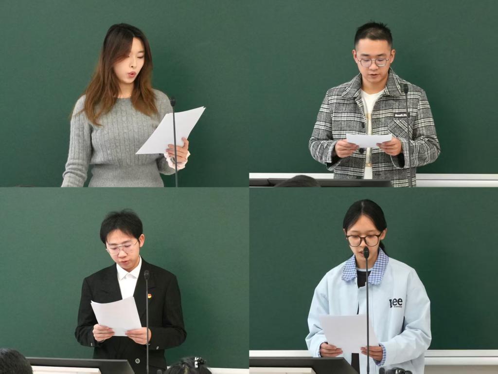 在中国人民抗日战争暨世界反法西斯战争胜利80周年之际,为引导新时代青年理解与传承革命精神,国际学院于11月26日在综合楼109进行第七期(校56期)党员发展对象道德实践成果汇报展示。学生党支部书记张莹玥、尹曦、朱明洁,研究生党支部书记盖幢幢及各实践小组代表共同参与了本次活动。