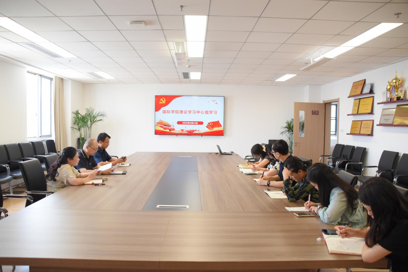 6月24日,国际学院召开理论学习中心组学习会。学习2025年第13次校长办公会、第29次党委常委会第一议题学习资料。会议由学院党委副书记张晋津主持。