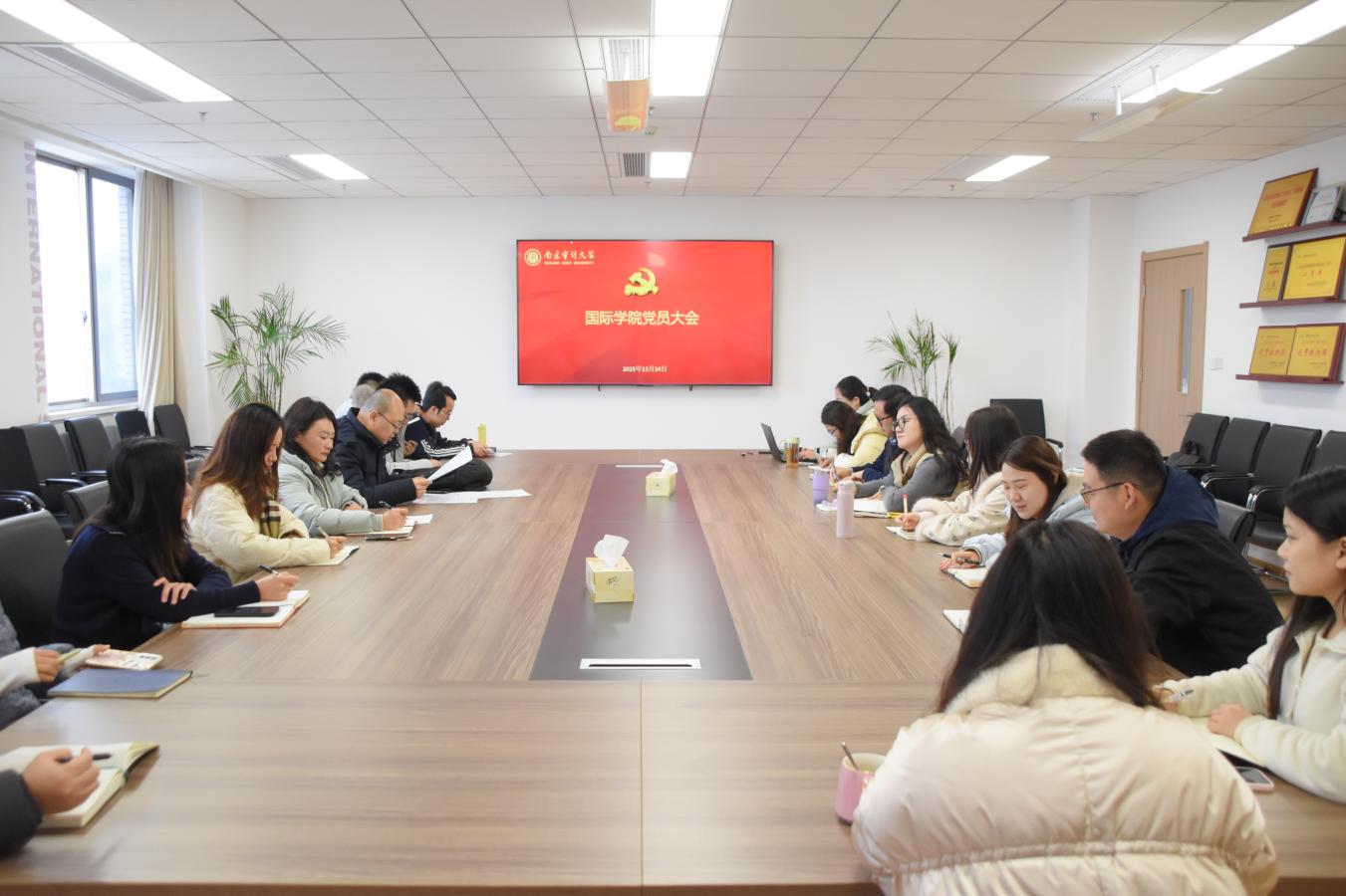 12月24日,国际学院召开党员大会。会上,学院党委书记张晋津领学高校毕业生就业工作座谈会会议精神、习近平对全面依法治国工作作出重要指示以及《推进党的自我革命要做到“五个进一步到位”》。张晋津强调,要聚焦高校毕业生就业工作,要求优化岗位拓展与供需对接,推动教育综合改革,促进高校毕业生高质量充分就业;要坚持党的领导、人民当家作主、依法治国有机统一,全面贯彻法治思想,推进法治体系建设,为现代化建设提供法治保障;要推进党的自我革命,要深化思想认识、增强党性、规范权力运行、严格监督执纪、落实治党责任,做到“五个进一步到位”。